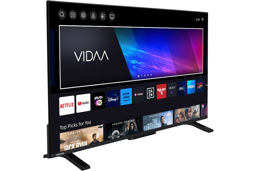 • Smart TV platform (VIDAA) with web browser, streaming apps (Netflix, YouTube, Prime) and voice control compatibility.
