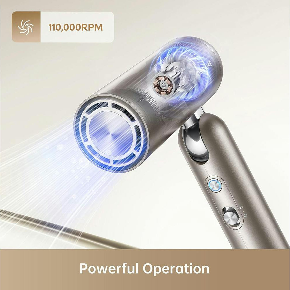 The 110,000RPM* motor thoroughly dries short-length hair in as short as 40 seconds. Speedy 70m/s* winds whisk away excess moisture, delivering 50m³/h*of rapid airflow.