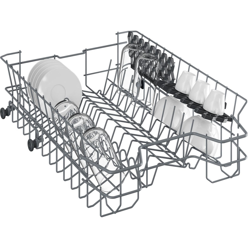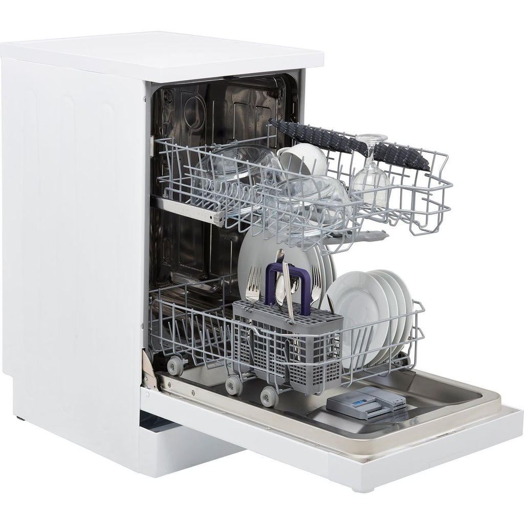 The Beko DVS04X20W Slimline Dishwasher in white offers a 10‐place setting capacity with slim 44.8 cm width—making it ideal for smaller kitchens. It features four/five programmes including a Mini 30′ wash and Quick & Shine mode, a Half Load function for water & energy savings, and a removable sliding cutlery basket to optimise space. With a noise level of 49 dB and energy rating E, it blends convenience and efficiency.