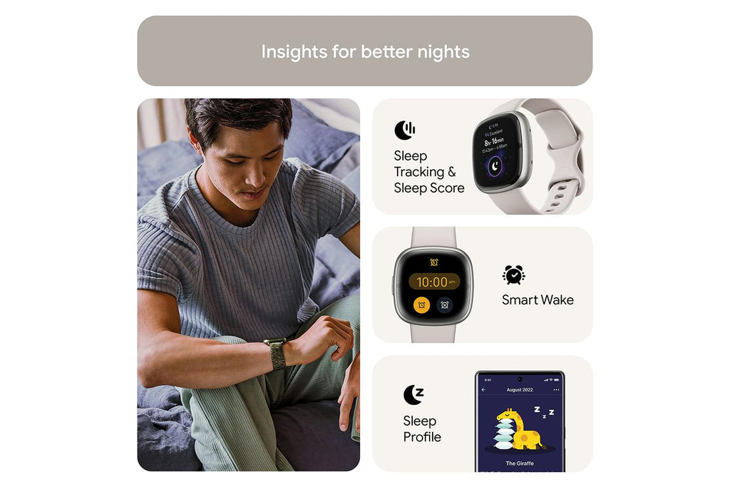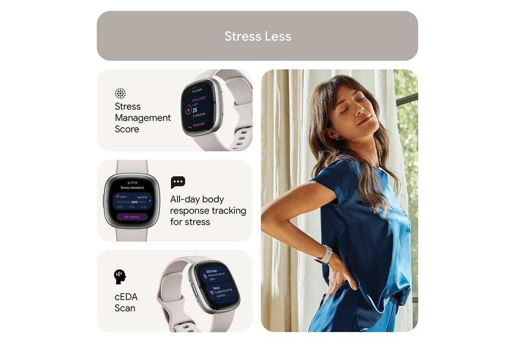 Discover holistic health tracking with the Fitbit Sense 2 (FB521SRWT)—the Lunar White / Platinum variant. Built with advanced sensors, this smartwatch features continuous EDA (cEDA) stress detection, ECG app, SpO₂ monitoring, Sleep Profile, and a 6+ day battery life. With Google integration, you can use Live Translate, Google Wallet & Maps, and voice assistants. Enjoy a sleek, light design in a stylish white and silver finish.
