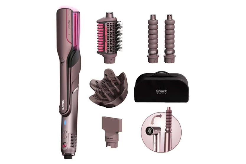 The Shark FlexFusion Straight (model HD652SUK) is a versatile 5-in-1 hair styling system combining powerful airflow with heat-controlled ceramic plates for efficient styling with minimized damage. Designed for both wet and dry hair, it includes multiple attachments: a wet-or-dry straightening tool, a glow-boost brush, auto-wrap curlers, a concentrator nozzle and a diffusing tool. With “Scalp Shield” mode to protect new growth, this system is ideal for one tool that handles blow-drying, straightening and curling all at once.