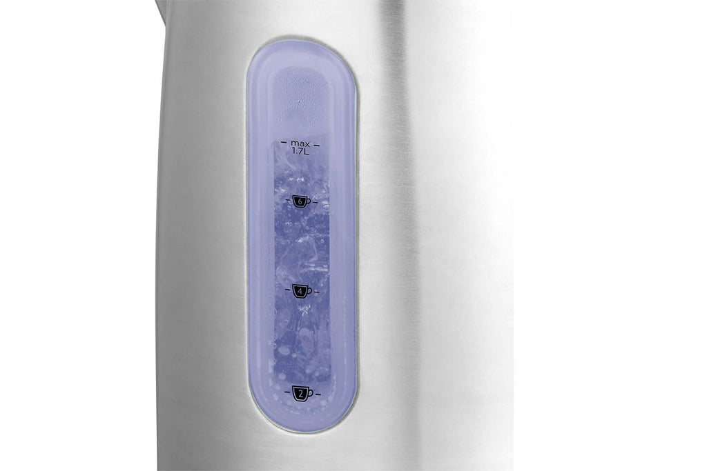 - Brushed stainless steel finish with internal blue illumination when boiling — stylish and functional.