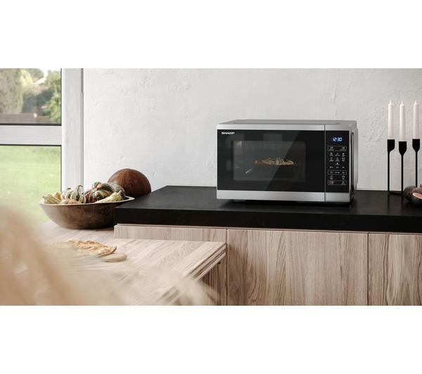 Cook and reheat with ease using the Sharp YC-MS252AU-S 25L Solo Microwave. With 900 W of power and a 25-litre capacity, it’s perfect for everyday family use. Featuring a fully digital control panel with 11 power levels, 8 automatic programmes, a large 288 mm turntable, and an ECO mode to reduce standby power, this microwave combines performance and convenience. The sleek silver finish complements modern kitchens.