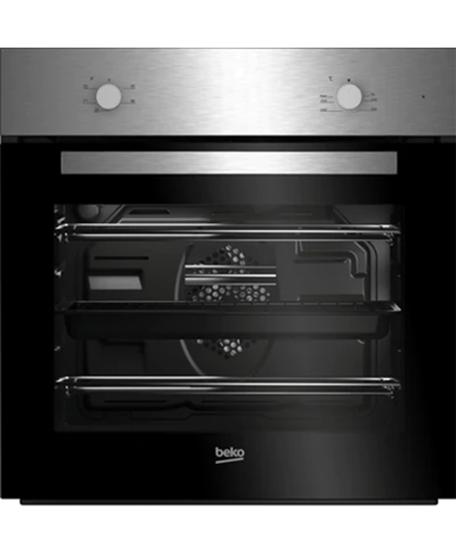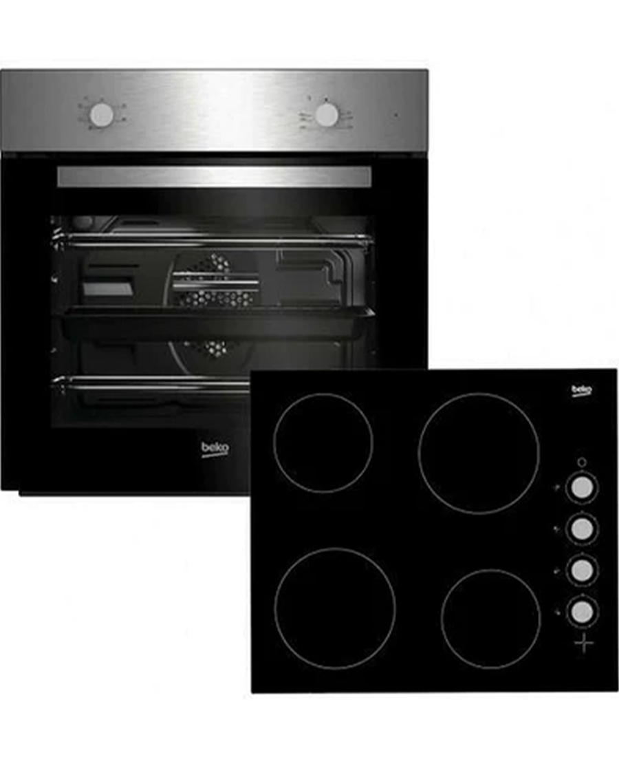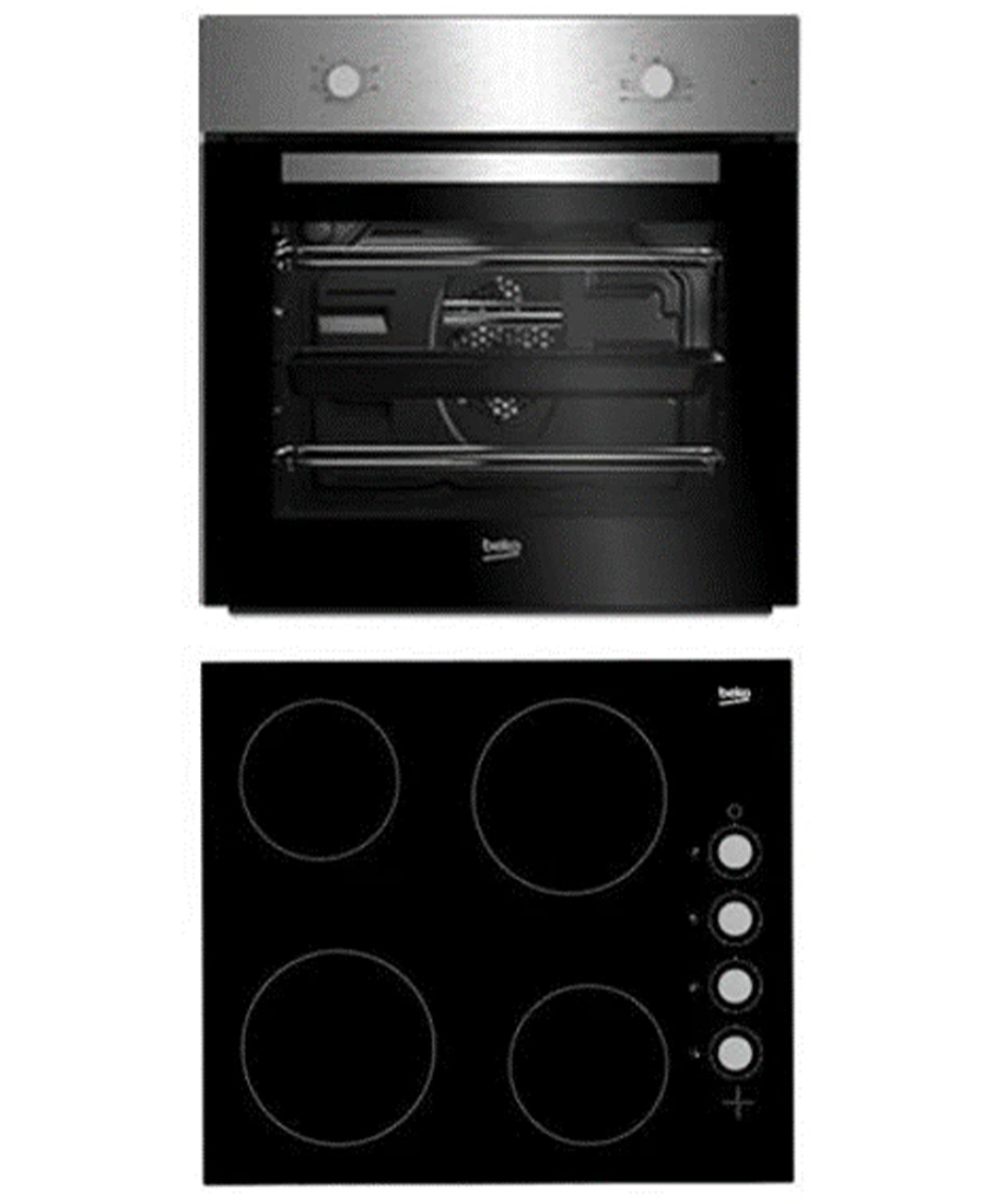 The Beko BBSF210SX is a 60 cm built-in package combining a fan oven and a ceramic hob. With features like True Fan Cooking, SimplySteam self-cleaning, a 66 L capacity and a sleek glass hob, it is ideal for modern kitchens.