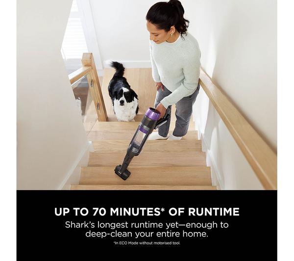 Featuring Shark’s Clean & Empty system, a simple slide empties the bin without contact, while up to 60 minutes of runtime gives you freedom to clean every corner. From handheld mode for the car to full height for floors, this vacuum does it all — with smart display, LED headlights and a removable battery.